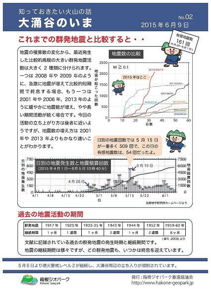 大涌谷で今、何が起こっているのか、グラフなどを用いて説明されています。