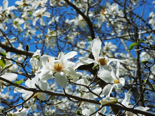 大きなコブシの木も春の青い空に向かって、真っ白な花を精一杯咲かせています