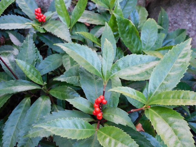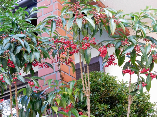 こちらもまだ幼木ですが、万両も千両も真っ赤な実をたくさん付けてくれました。