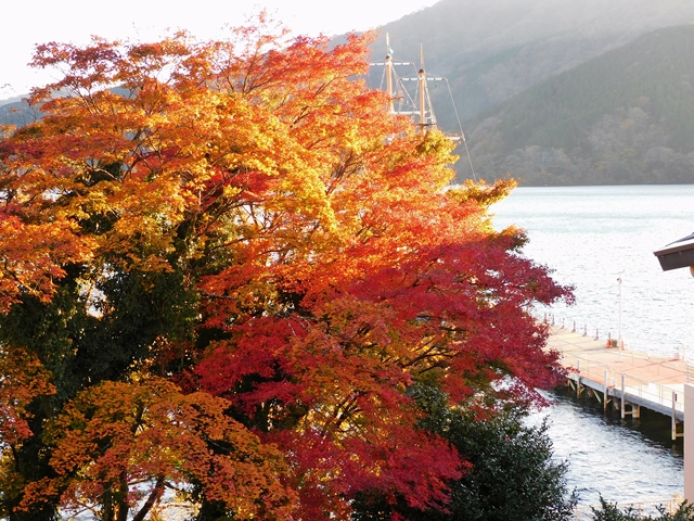 芦ノ湖湖畔の紅葉がとっても鮮やかでした。