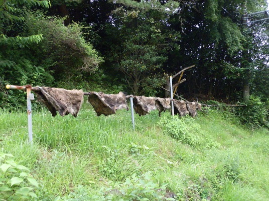 お店の人がいたので、「スゴイですね!」と声をかけると、「猟師ですから」言われました。「この皮どうされされるのですか?」と思わず尋ねてしまいました。