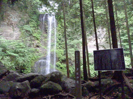 酒匂川の支流内川にかかる落差23m、幅5mの滝で、毎年1月半ばに夕日が滝口に沈み夕日に映える美しさから名づけられたと言われています