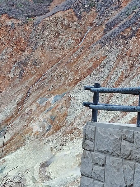 今年の長梅雨と豪雨で大涌谷火山台地を駆け降りる一筋の流れが、
