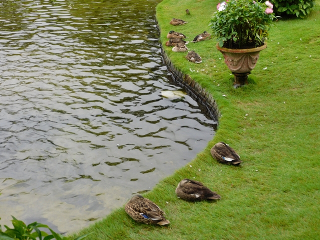 水辺の鴨達は首をすくめて、ちょっと寒そうでした。