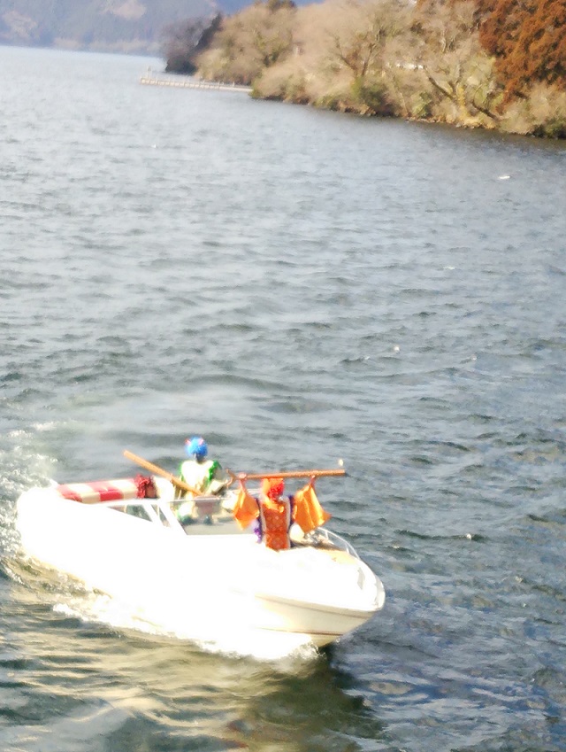 箱根神社で豆まきにより追い出された鬼さんは、芦ノ湖に逃げ出し