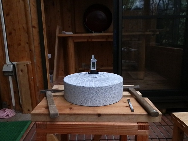買い求めた石臼(外国製だったかもね~)、当初はうまく蕎麦粉が挽けませんでした。